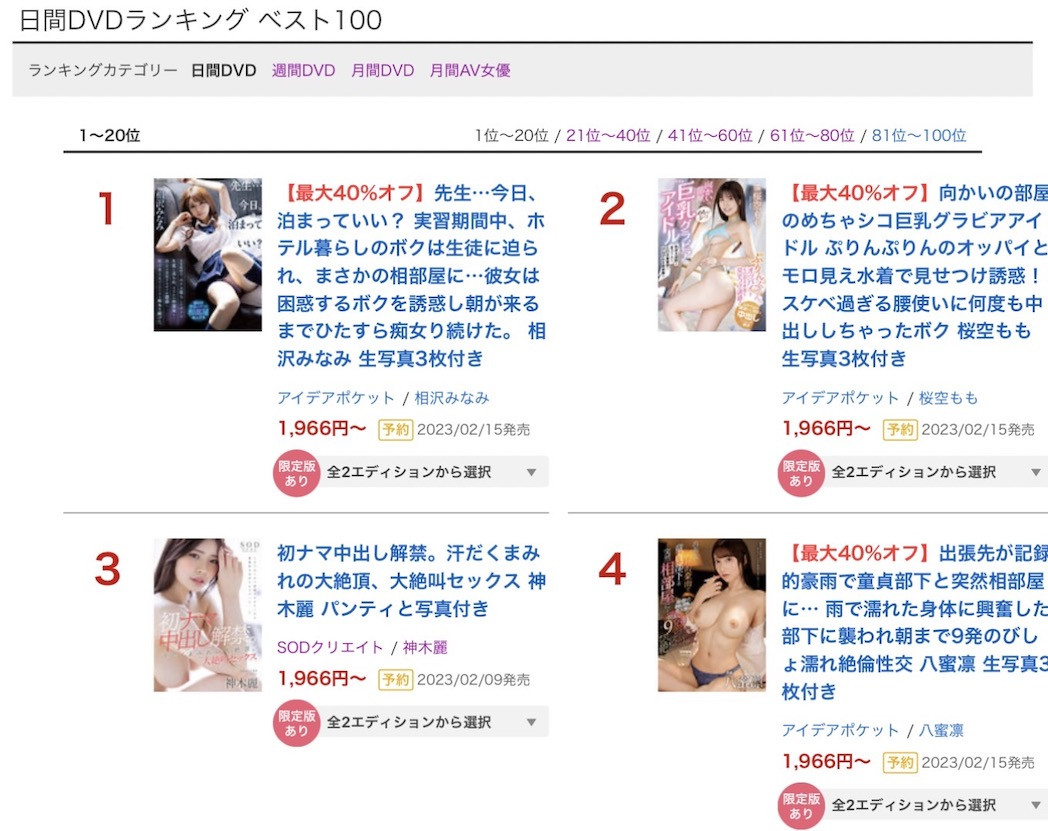 是啦,熟悉的相沢みなみ(相澤南)最對味,拿到日間榜第一已經是她的日常了,只是既然日間榜如此強大,為什麼到月榜和年榜就掉下去?